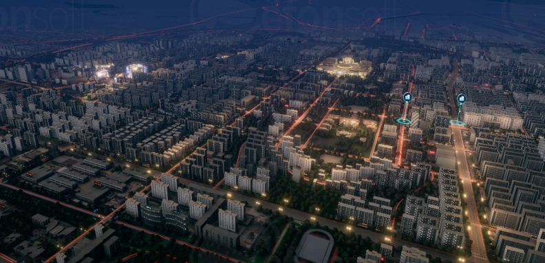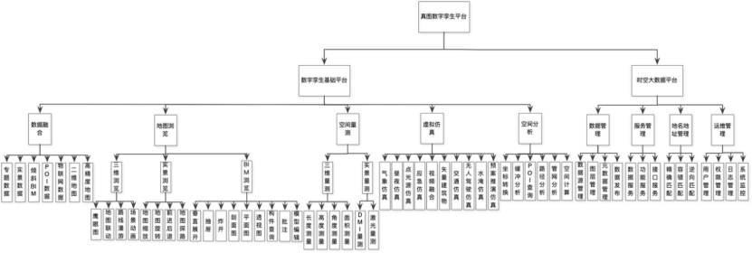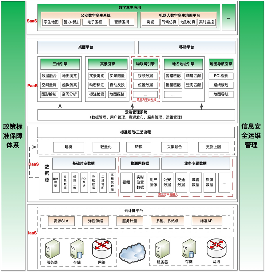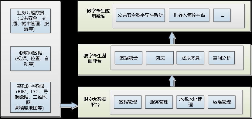 通过数字孪生技术的应用开发数字孪生基础平台,在三维场景渲染与交互的基础上,并支持三维场景呈现与交互,并提供场景 browsing, spatial measurement, virtual simulation, 和 spatial analysis功能。该平台整合了实景服务系统与时空信息云平台资源,在此基础上构建公共安全领域的数字孪生应用体系,并开发智慧城市建设相关管理平台。同时,在智慧城市 IOC, 城市管理, 交通, 和旅游等相关行业领域构建相应的应用体系。