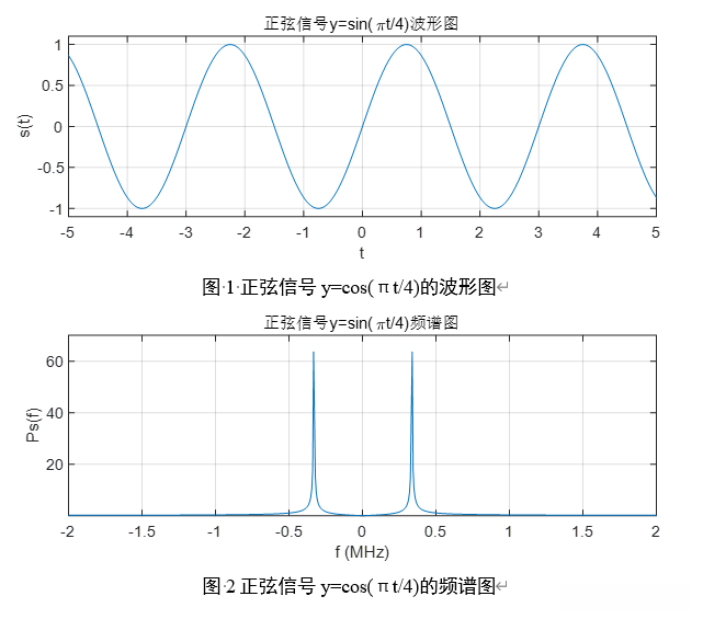 实验一:用MATLAB实现正弦信号y=cos(1/4pit)波形及频谱,画图、对每一行代码进行标注并完成实验报告。