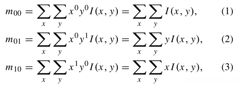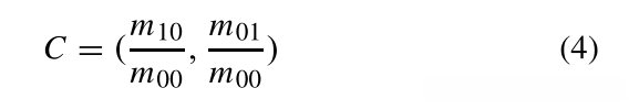 其中x和y是每个标记区域的像素坐标。I (x, y)为区域在(x, y)处的像素值,用m00、m01、m10可得到区域的质心(即图3.c中的C1、C2、P):