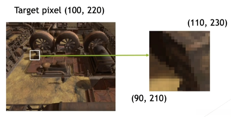 每一个像素都需要计算其周围区域的所有21×21个像素,并最终确定它们各自的加权平均值。