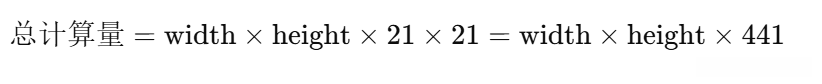 2 * 10 + 1 = 21个像素。 - 总的计算量为: