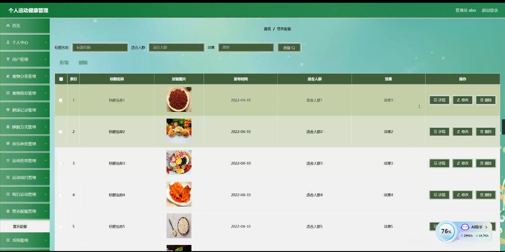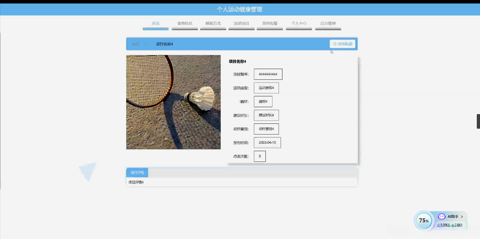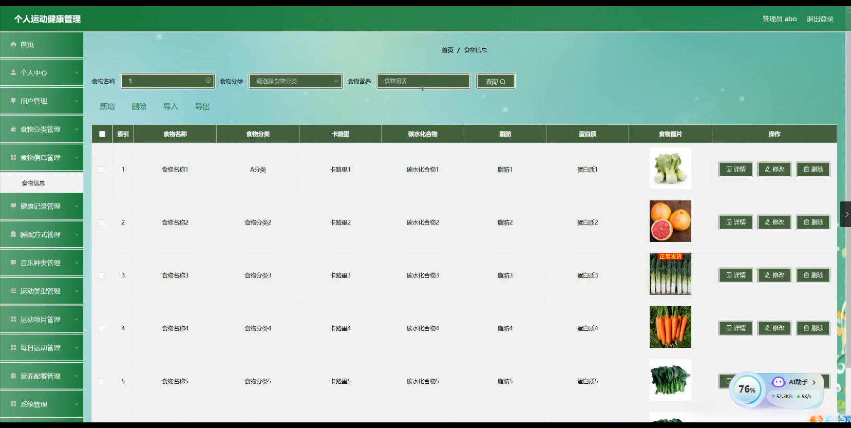 - 食物分类与信息研究 :探讨适合不同运动需求的食物分类方法,研究食物信息(如营养成分、热量等)如何与个人运动健康管理相结合,为用户提供合理的饮食建议。