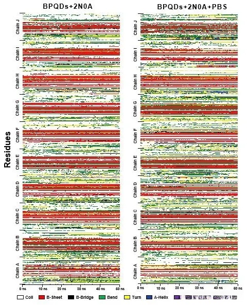BPQDs解离α-syn原纤维在有无PBS缓冲溶液的作用机制区别的模拟