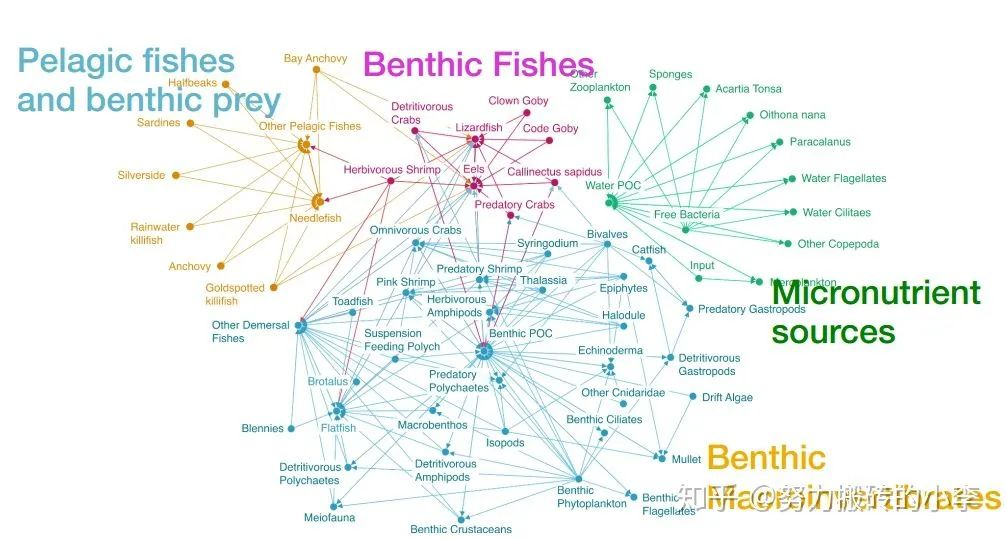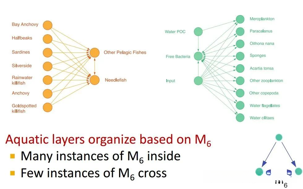 从下图可以看出,在食物链网络中基于右下角 motif 的谱图聚类结果中可以看到,在每一类结果中都捕捉到了特定 motif 的结构特征,在每一类内部都包含较多特定 motif 的实例(即具有相同功能或作用),而不同类别之间共享 motif 的数量较少。