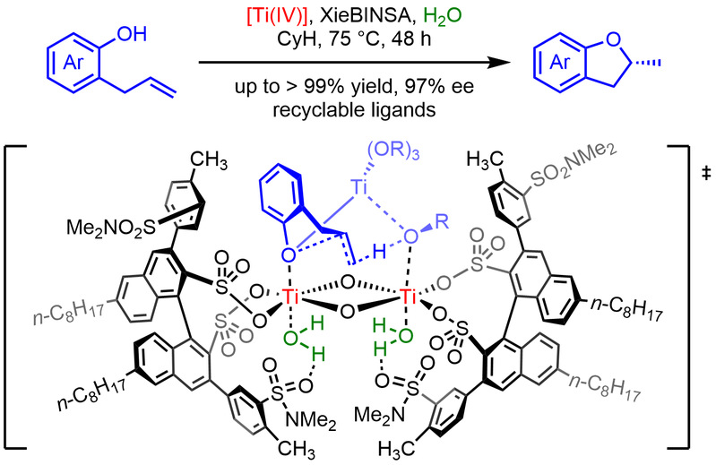 Xie and Li have developed a chiral binaphthyldisulfonate complex featuring a bis(μ-oxo)-ditanium(IV) core that achieves highly enantioselective intramolecular hydroalkoxylation reactions of nonactivated alkenes. This innovative approach has been published in ACS Catalysis in 2021.