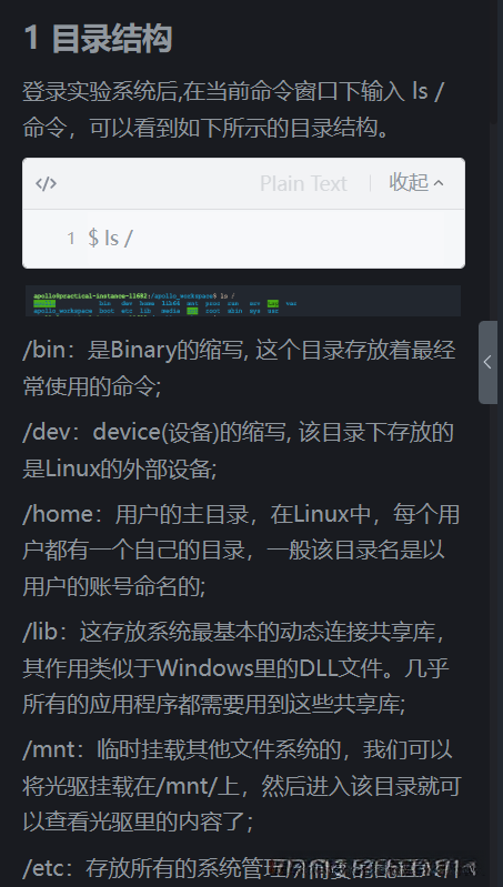 (1)通过Apollo stdio云实验室Linux基础入门与实践,理解Linux的文件目录结构、掌握Linux的常用指令的操作。