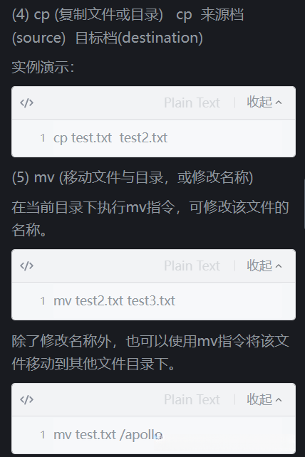 mv指令:用来给文件重命名,例如将hello world重命名为hello,可以mv helloworld hello, mv指令的另一个作用是移动文件,例如将hello移动到apollo_workspace目录下,可以使用mv hello / apollo_workspace