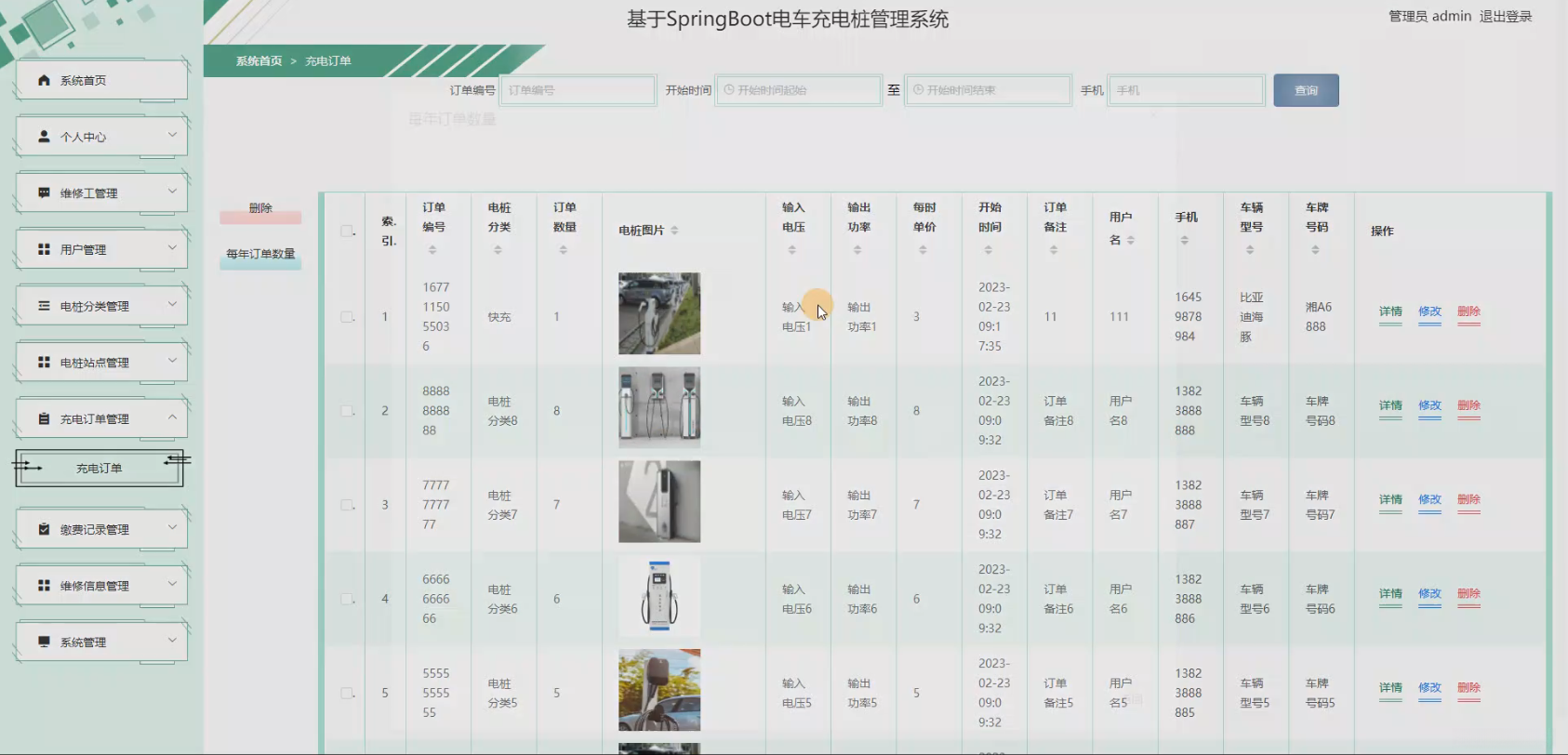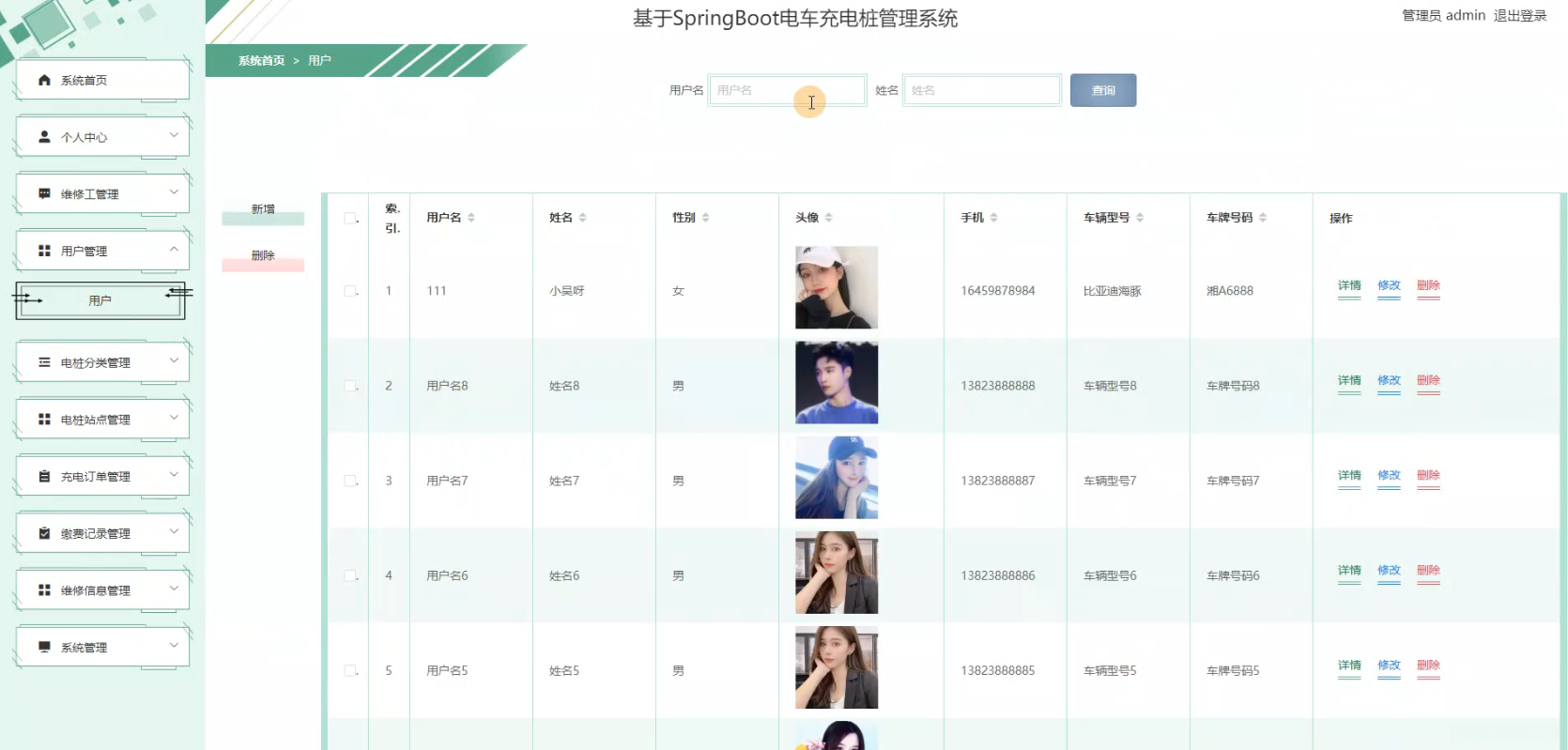 - 电桩站点管理:支持新增站点记录、删除指定站点数据以及更新修改现有站点信息,并提供相关查询功能。