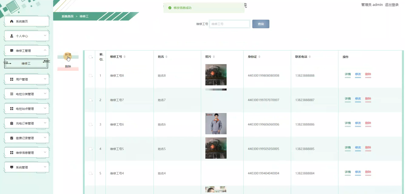 - 维修工管理:支持新增维修工记录及日常维护操作。