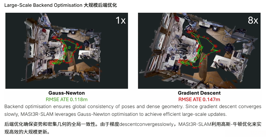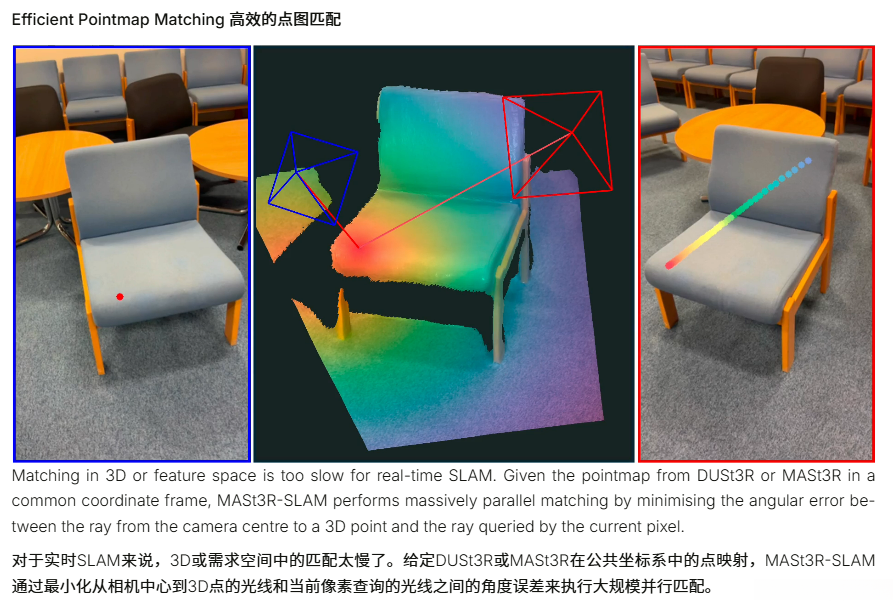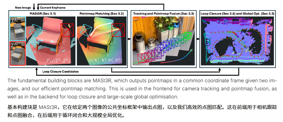 - 使用MASt3R网络作为基础:该系统使用了MASt3R网络来预测点云,从而避免了传统SLAM中需要手动设计先验知识的问题。