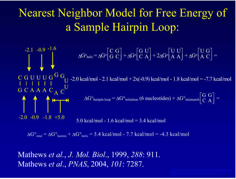 Nearest Neighbor Model for Free Energy of a Sample Hairpin Loop:
