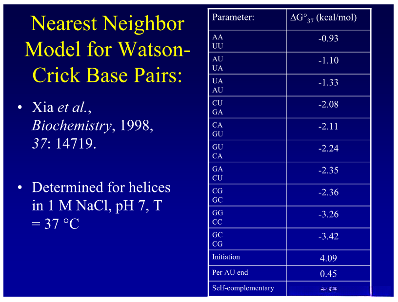 Watson-Crick****碱基对的最近邻模型,描述了 DNA 中碱基对之间的相互作用力和稳定性