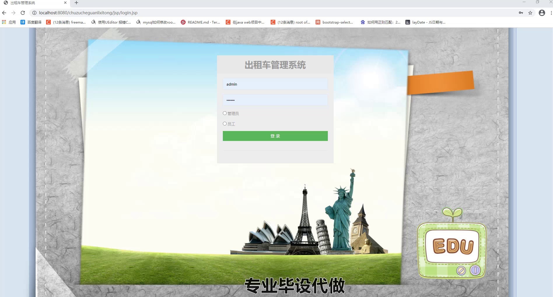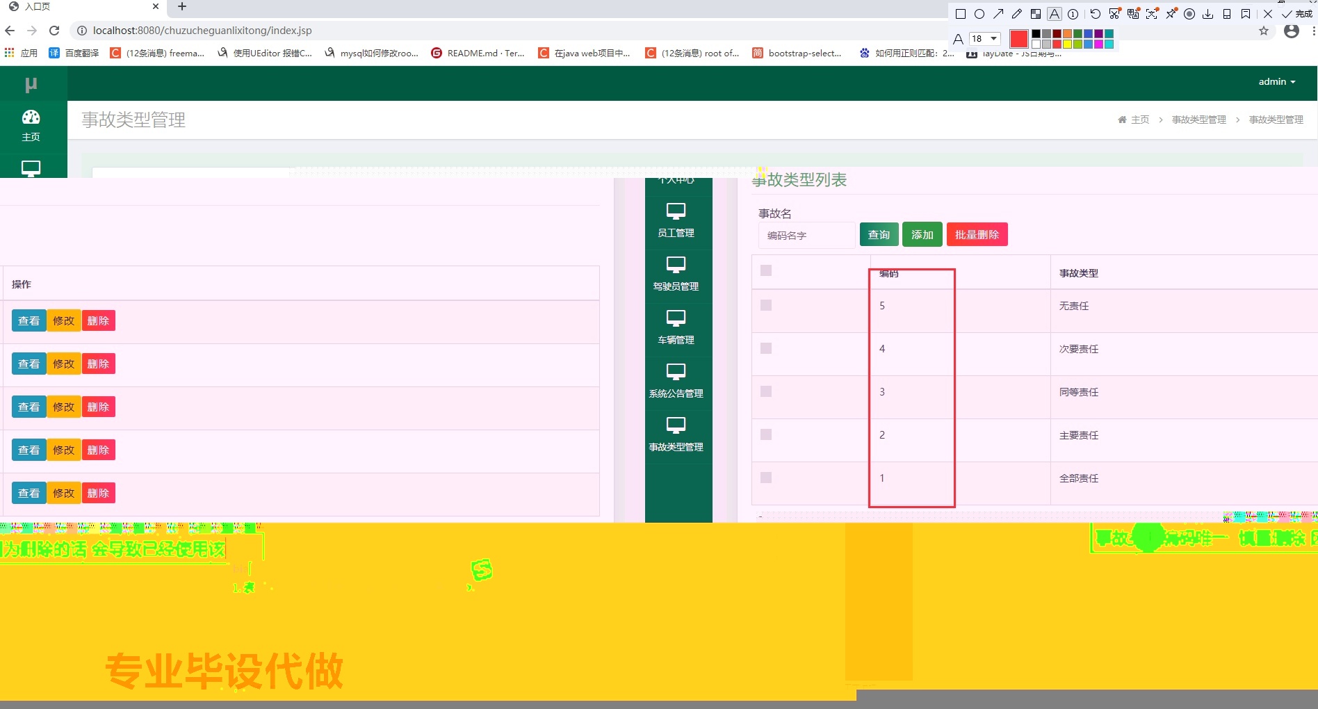 出租车管理系统为管理员提供了权限配置, 其中包含管理员登录后台管理驾驶员、员工信息、事故类型记录以及车辆年检等模块。