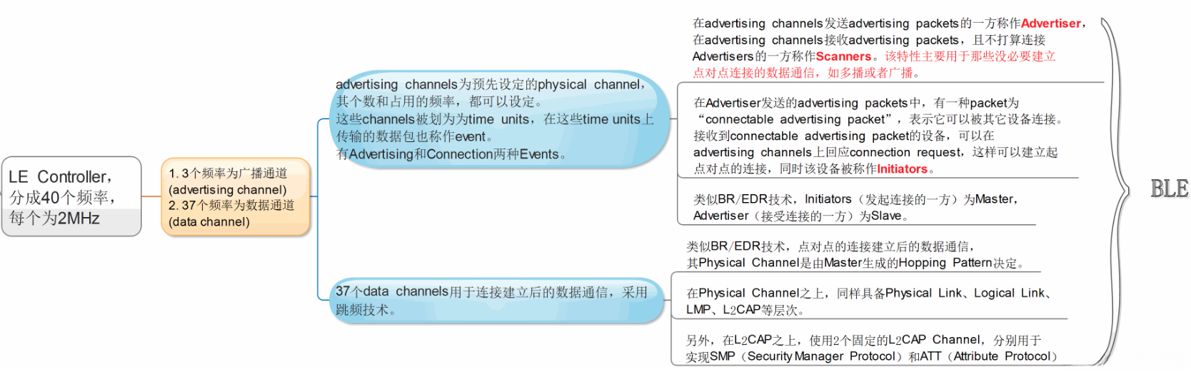 LL层是协议栈的核心,功能包括选择射频通道、数据过滤、完整性检查、重传、链路管理、流量控制等。LL层只负责数据收发 ,对数据进行怎样的解析则交给上面的GAP或者GATT。 -