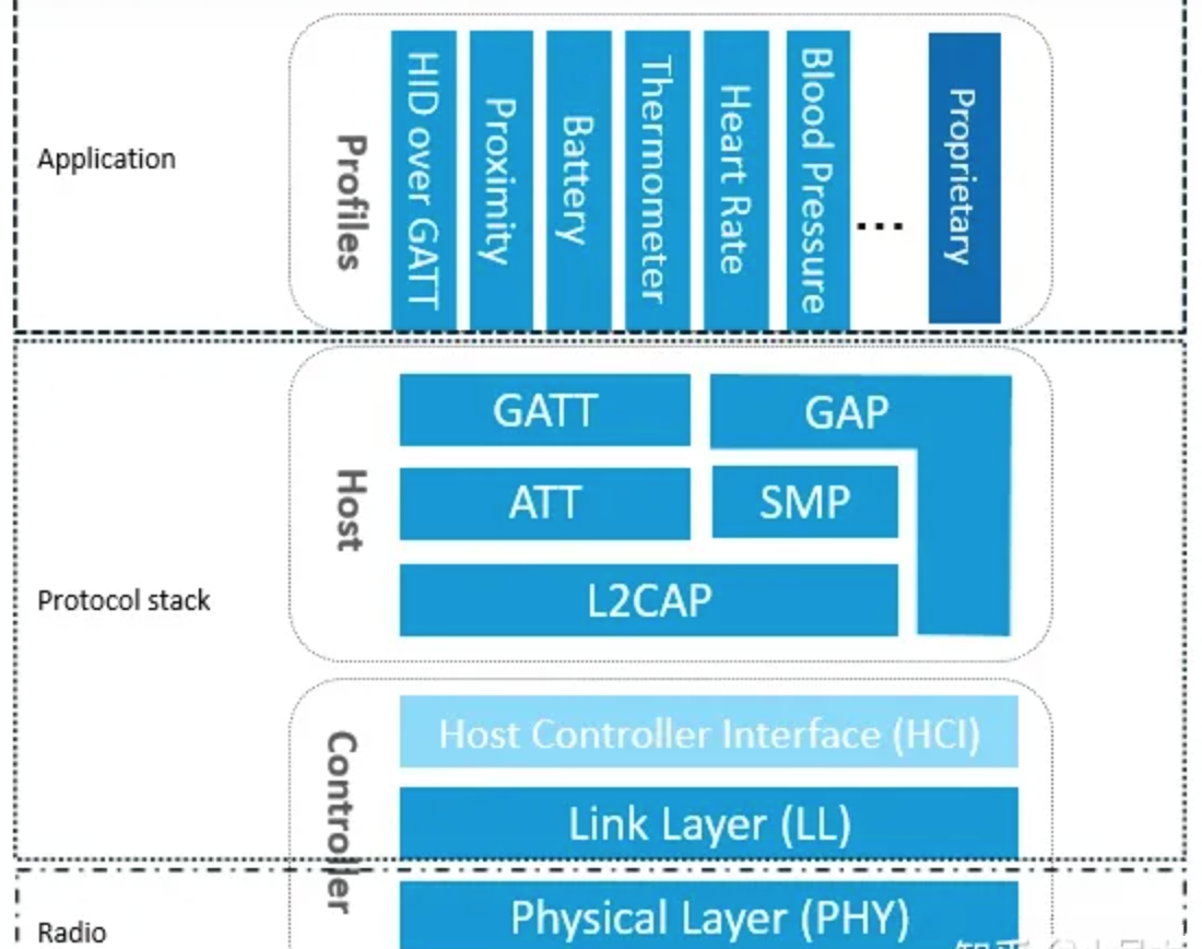 HCI是可选的,HCI主要用于2颗芯片实现BLE协议栈的场合,用来规范两者之间的通信协议和通信命令等。 -