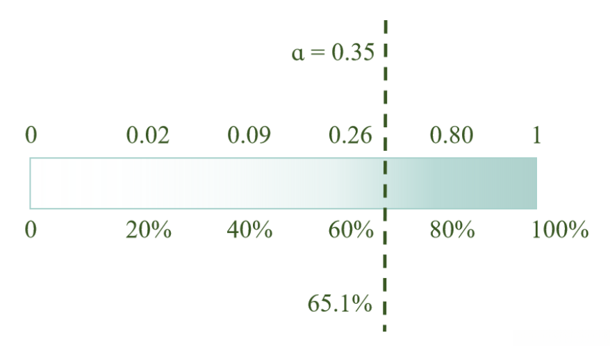 Opacity distribution in the smallcity scene of MatrixCity dataset. The horizontal axis below the bar shows percentage ranging from 0% to 100%. These percentages correspond to the opacity values from 0 to 1 shown above the bar.