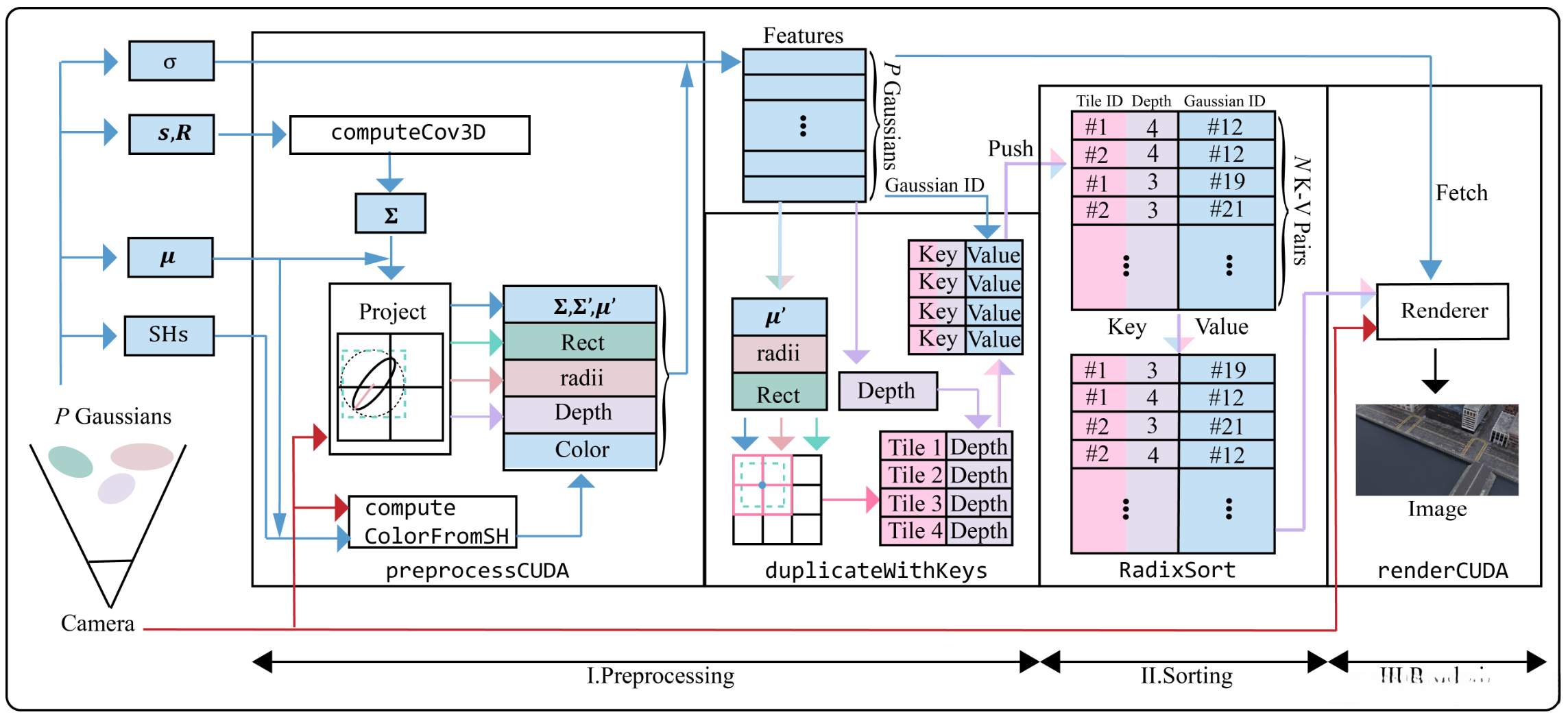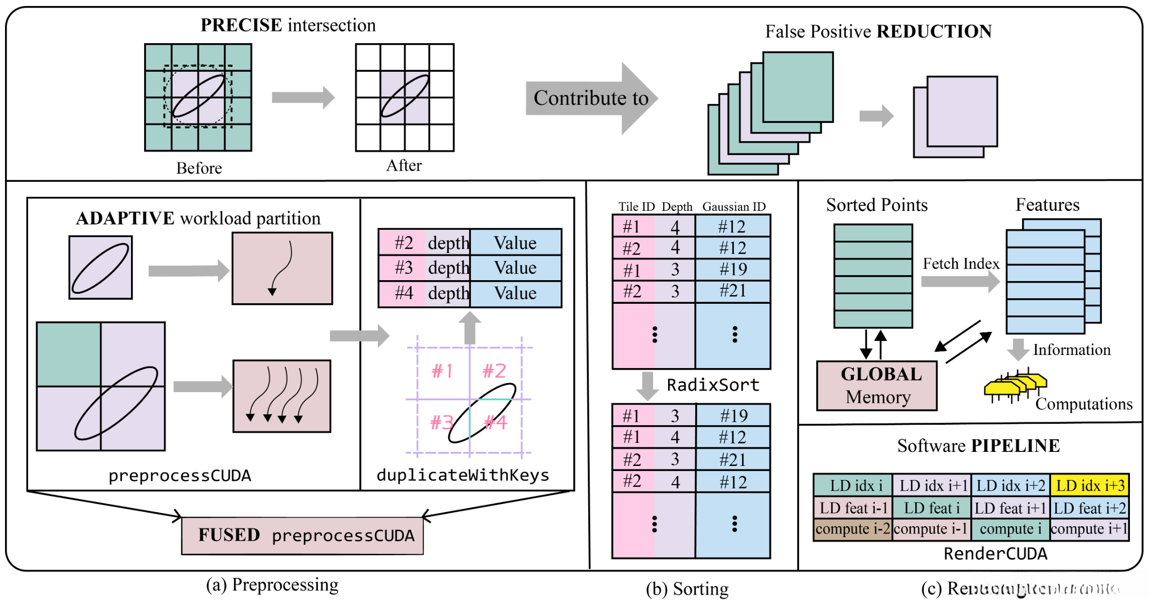 In this paper, we achieved a fast rendering pipeline through a refined algorithm design and several highly optimized implementations, addressing the redundancy and improper compute-to-memory ratio issues present in original 3DGS.