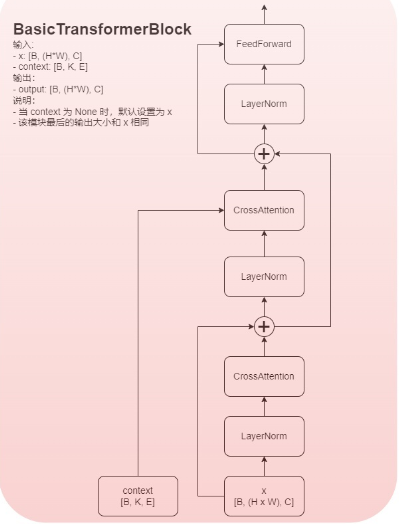 上述公式具有重要意义,在basicTransformerBlock的第二个cross-attention模块中,外部输入的作用体现在key(K)和value(V)生成过程中。具体而言,在此层结构中,当外部输入为textual information时,则对应的K和V是由textual features经过projection matrix转换所得的结果。