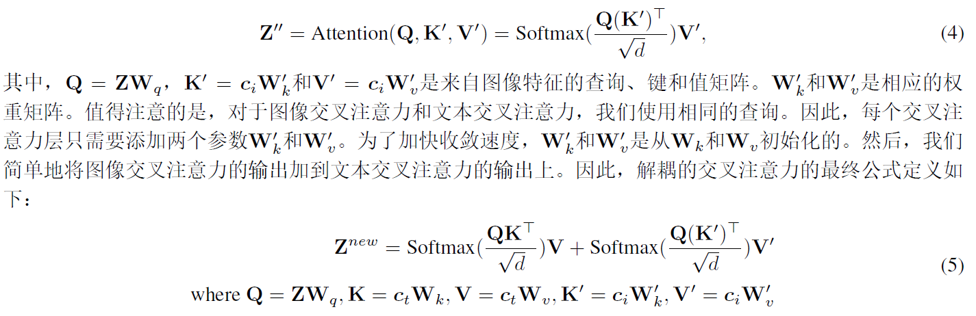分别对文本特征和图像特征进行cross-attention处理,并将其结果进行相乘操作。想法本身并不复杂。多数情况下会采取将图像特征与文本特征拼接后进行cross的方式。