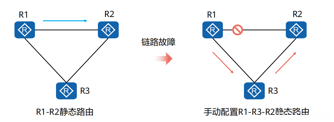 静态路由的缺点在于无法适应网络中的各种变化,每一条路由都是管理员自己手动配置的。