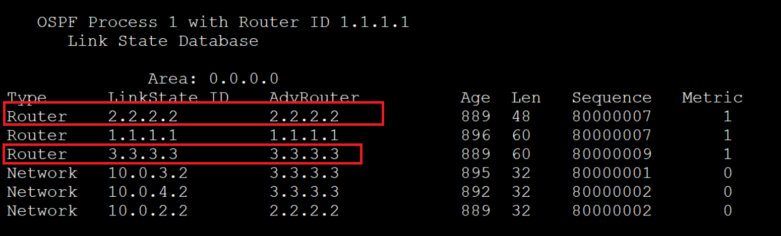 Type标识LSA的类型,AdvRouter标识发送LSA的路由器。
