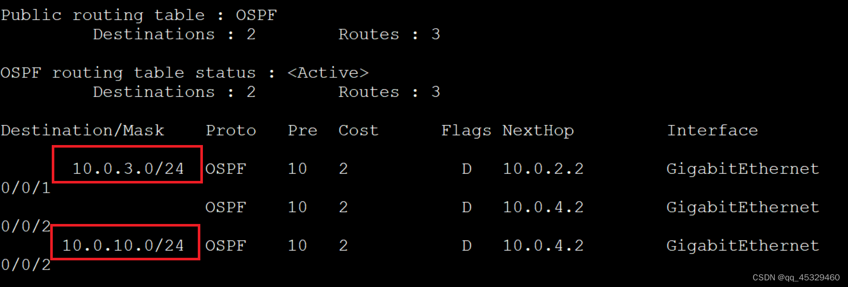 OSPF路由表包含Destination、Cost和NextHop等指导转发的信息。
