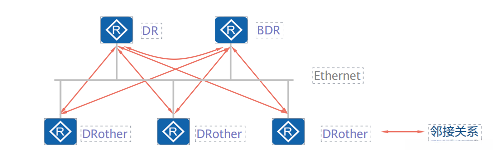 只允许DR、BDR与其他OSPF路由器建立邻接关系。DRother之间不会建立全毗邻的OSPF邻接关系,双方停滞在2-way状态。