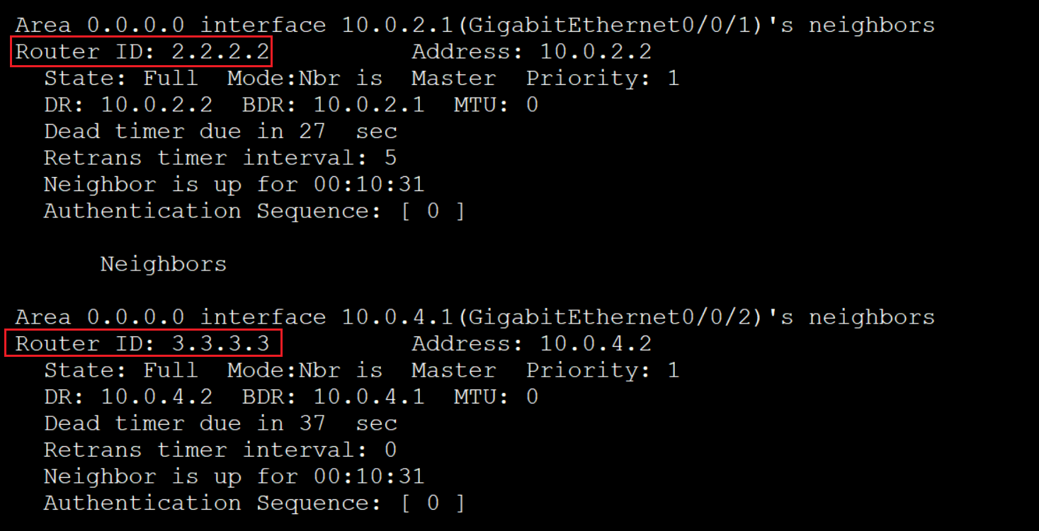 2、查看路由器的邻居信息、LSDB、OSPF路由表