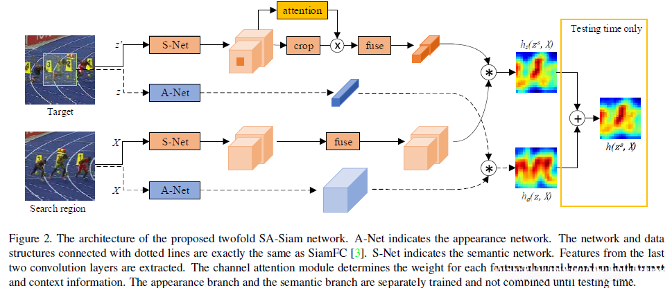 SA-Siam跟踪器包含语义分支和外观分支。每一个分支都是一个相似性学习的Siamese网络。