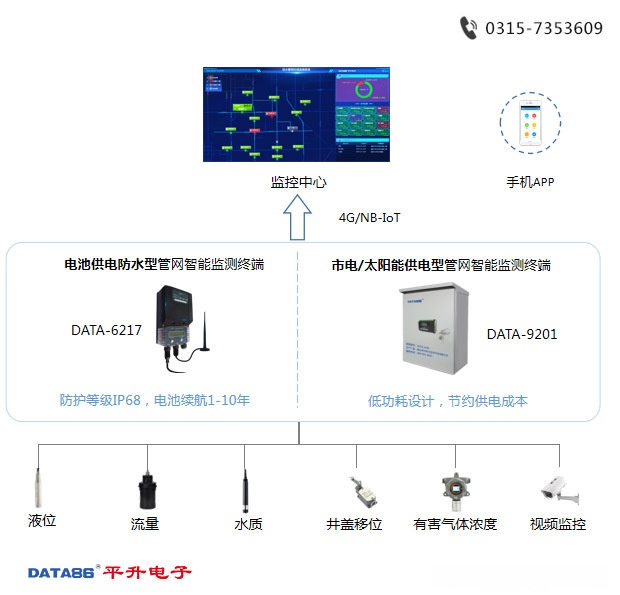 设备选择: 选用电池供电型管网监测终端 ,现场无市电,井下安装