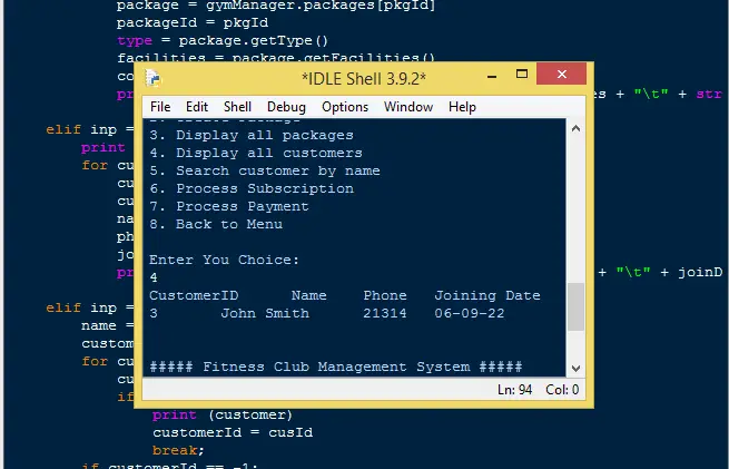 仅使用Python 编程语言构建的健身俱乐部管理系统 。该系统是一种用户友好的系统,可以轻松满足您的需求。该系统为您提供多种功能,帮助您管理健身俱乐部。它允许用户添加客户并创建您自己的特殊套餐。