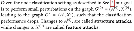 在节点分类攻击的过程中,我们能够控制的节点被称为attacker node。我们希望通过攻击改变分类结果的节点被称为target node。
