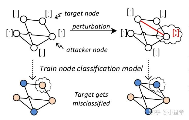 attacker node: 通常情况下,我们无法直接修改目标节点(target node),而是通过调整一些可修改的其他节点,以实现对目标节点分类的间接影响。