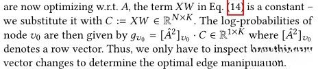 XW保持不变,其背后的原因是基于训练完成的GCN模型,因此,可训练参数W保持不变。同时,由于当前研究关注的是图结构扰动,输入特征X保持不变。对于同一节点而言,其输出自然形成一个1×k的行向量。g(v0)记录了目标节点与其他节点的连接关系。