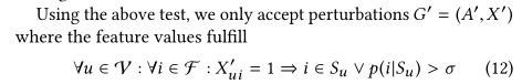 在这一阶段,通过上述公式计算得到的参数,可以用来衡量两个图是否具有相同的分布特征。接下来,我们定义了log-likelihood分数。只有当图结构扰动满足特定条件时,这种扰动才被认为是可行的。