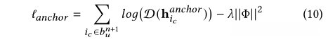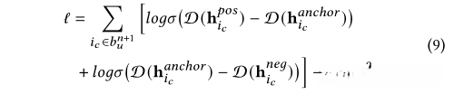 第二步,根据等式9用已经预训练好的 D(h 𝑎𝑛𝑐ℎ𝑜𝑟 𝑖𝑐 )去引导D(h neg 𝑖𝑐 )和D(h pos 𝑖𝑐 )的学习过程。