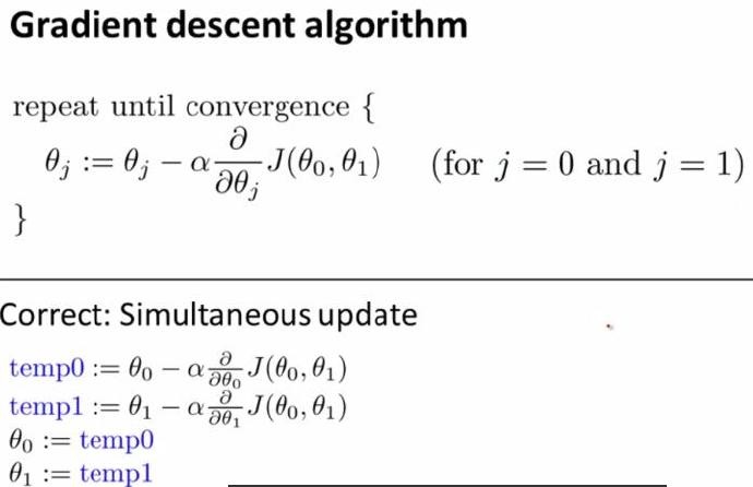 注意:更新这个等式 你需要同时更新 θ0和θ1