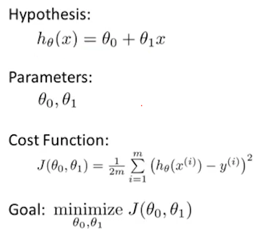 下面继续介绍代价函数在做什么,以下列出的假设函数和代价函数