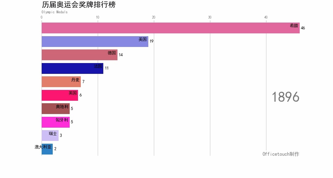 1896-2021历届奥运会奖牌榜动态排序(Matplotlib图表动画)
