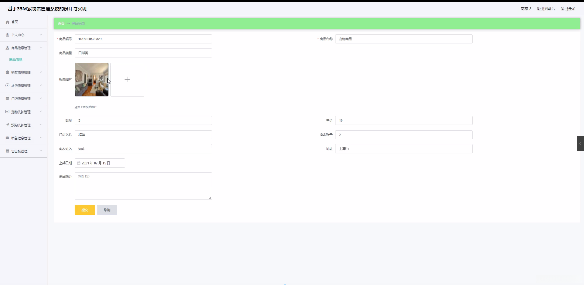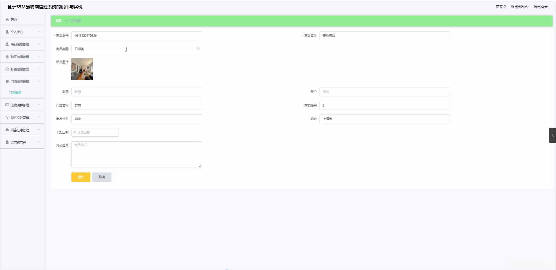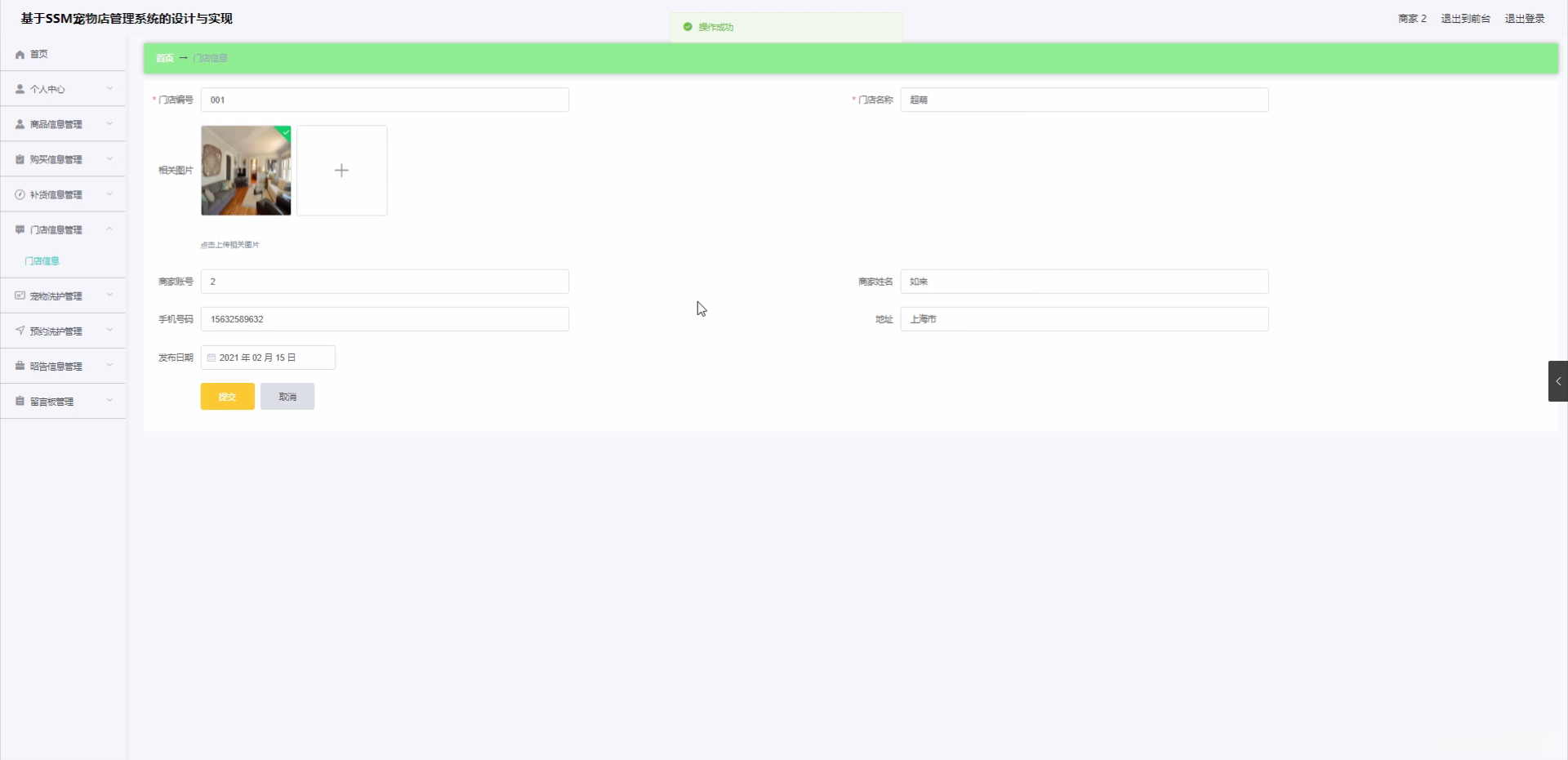 JAVA毕设项目宠物店管理系统设计与实现(Vue+Mybatis+Maven+Mysql+sprnig+SpringMVC)