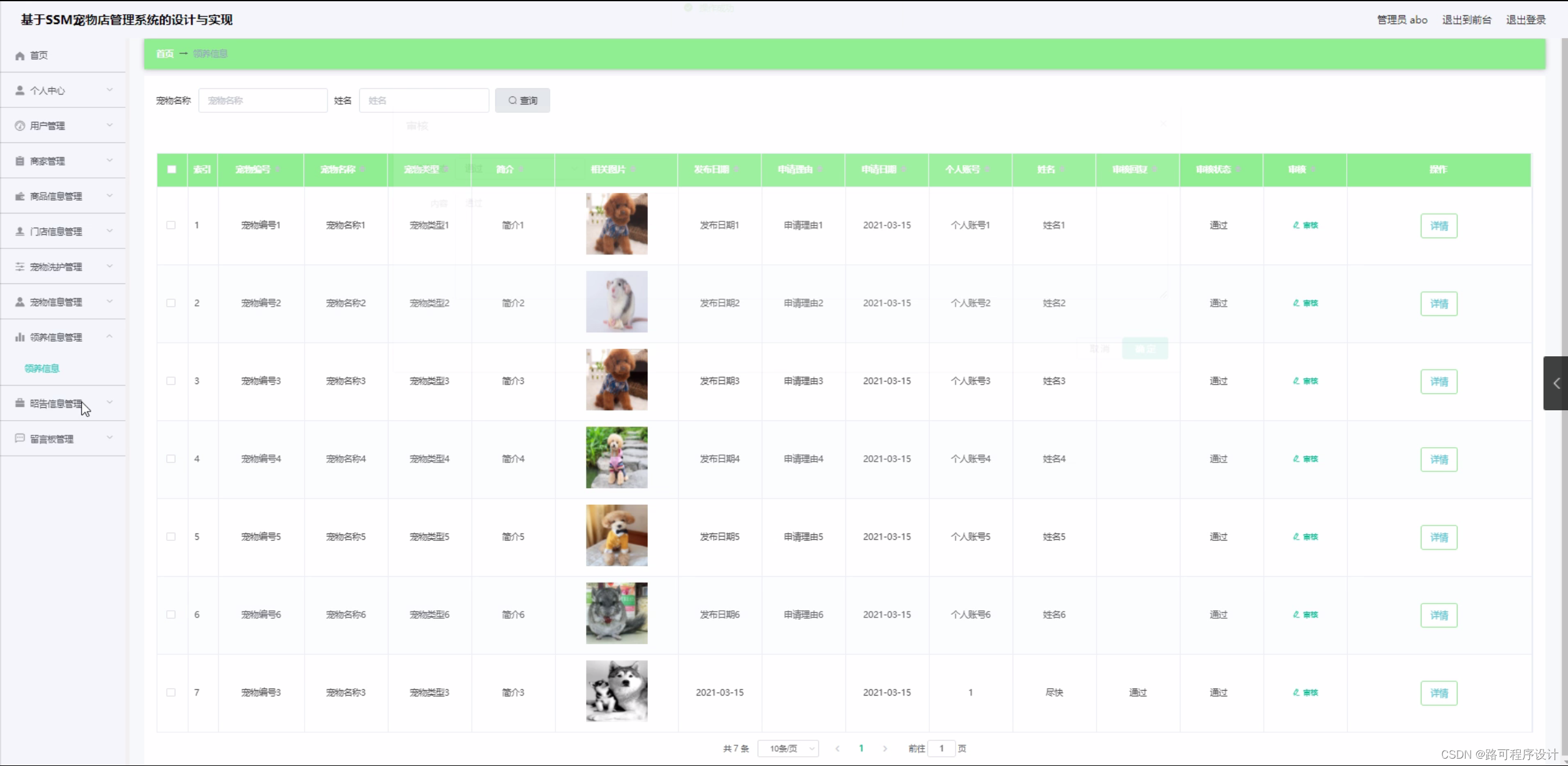 Java基于宠物店管理系统的设计与实现(源码+mysql+文档)