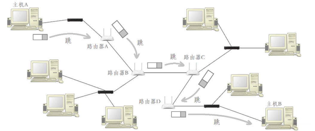 - 这一过程会持续下去直至将数据传输至最终的目的节点——主机 B。