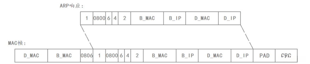 其中,在ARP响应中提到的各项参数(如硬件类型等)与相应的ARP请求参数值一致。