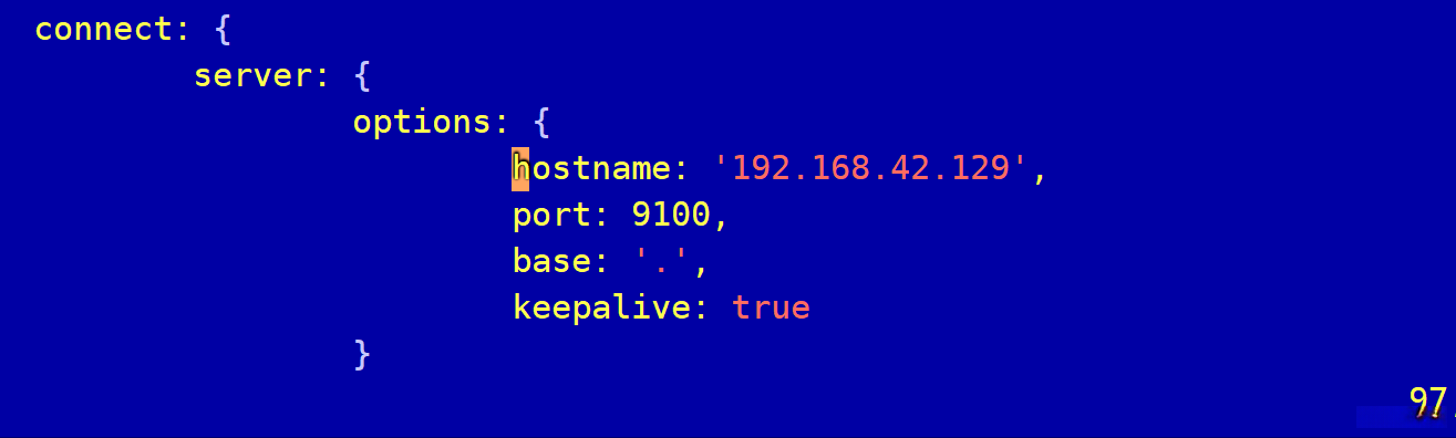 在gruntFile.js中配置97(有可能版本不同有上下浮动)行内容,添加一个hostname。