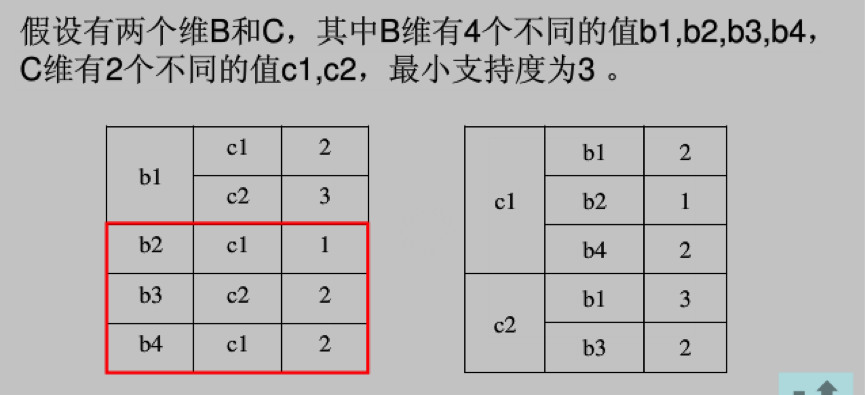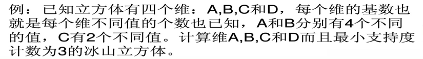 • 最小支持度(即最小支持度阀值)指的是部分物化的最小阈值(实际上相当于设定了一个范围)