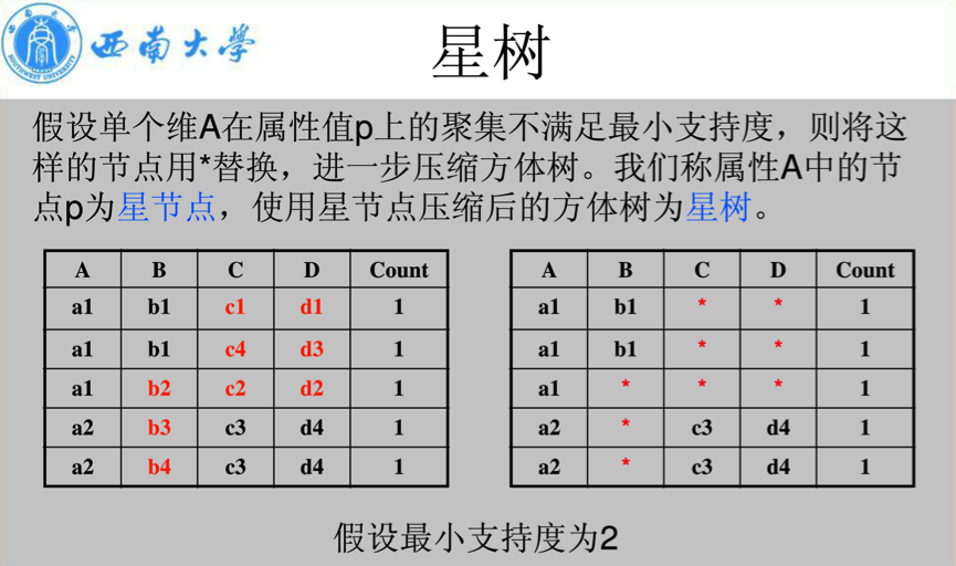 星节点:单个维在属性值p上的聚集不满足冰山条件(可用于剪枝)