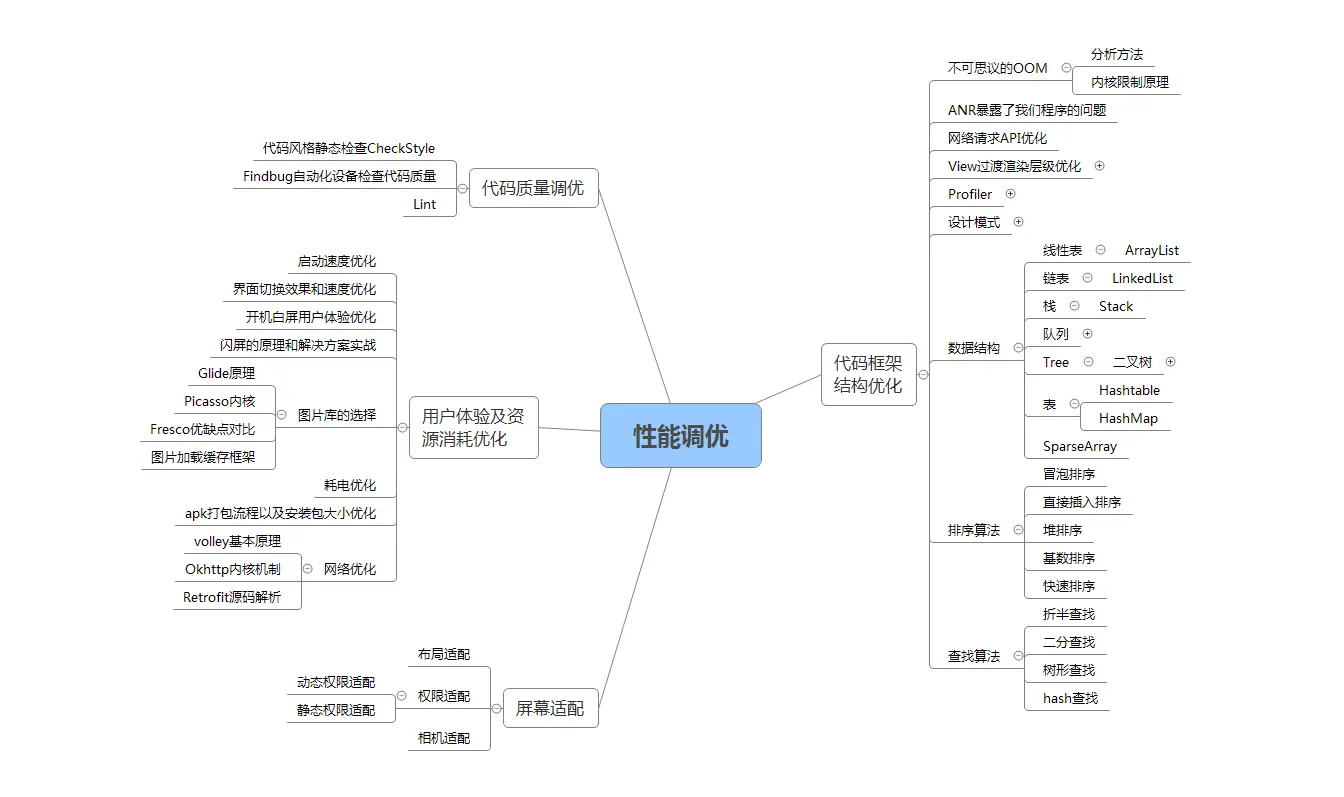 性能优化; 数据结构与算法以及设计模式理论都是这里面的关键基础和重点内容需要熟练掌握。