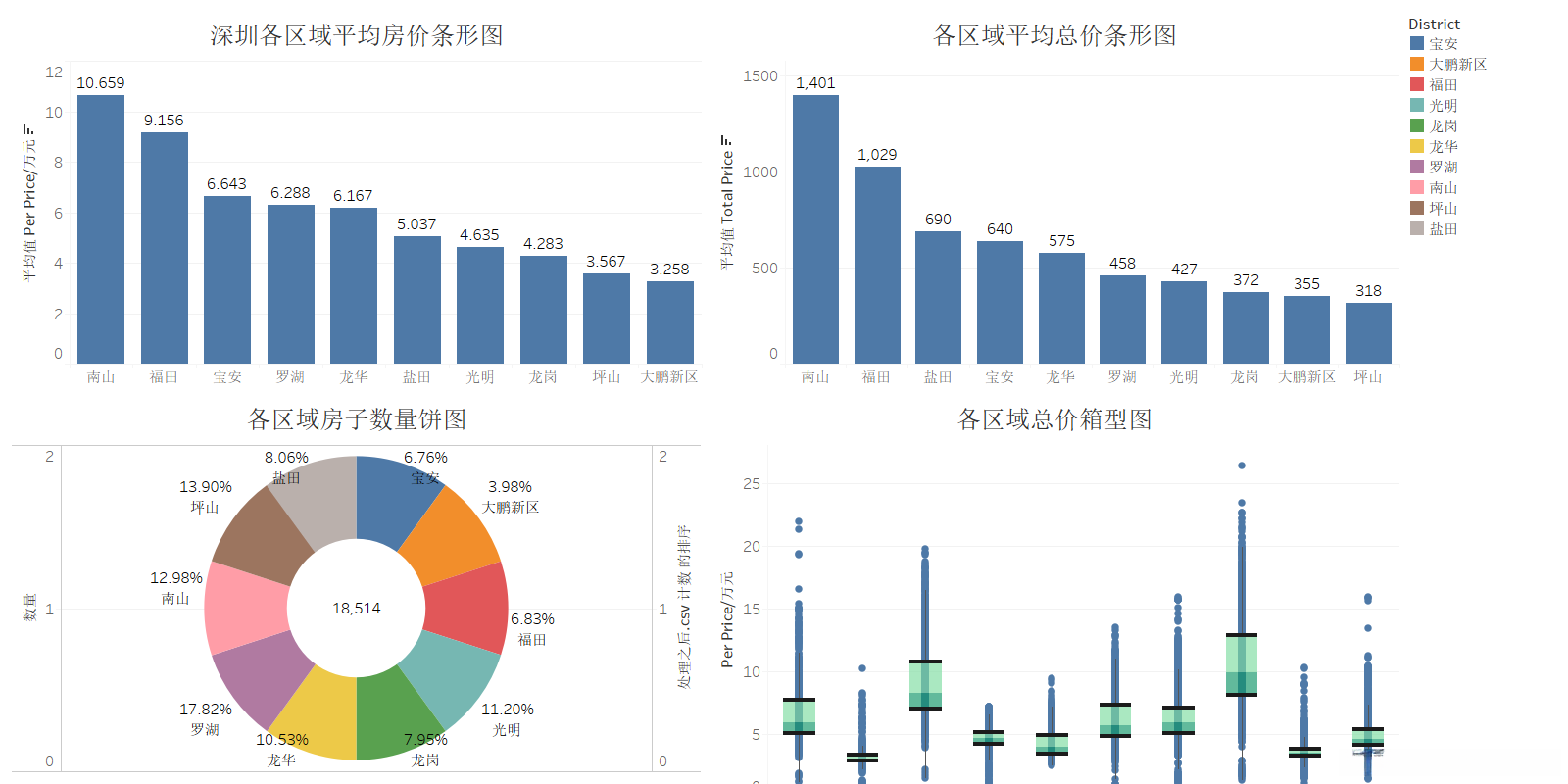 - 二手房总数量有18514套,数量最多的为罗湖,接近18%。