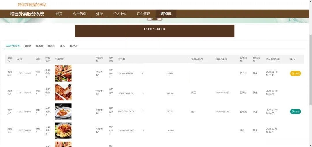 外卖订单管理:接收并处理用户订单,管理订单状态,确保及时准确地完成配送。