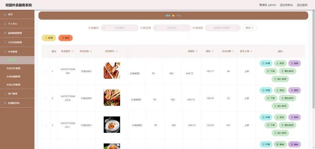 外卖管理:在系统中上传和编辑自己的外卖菜品信息,包括菜品名称、价格、图片等。